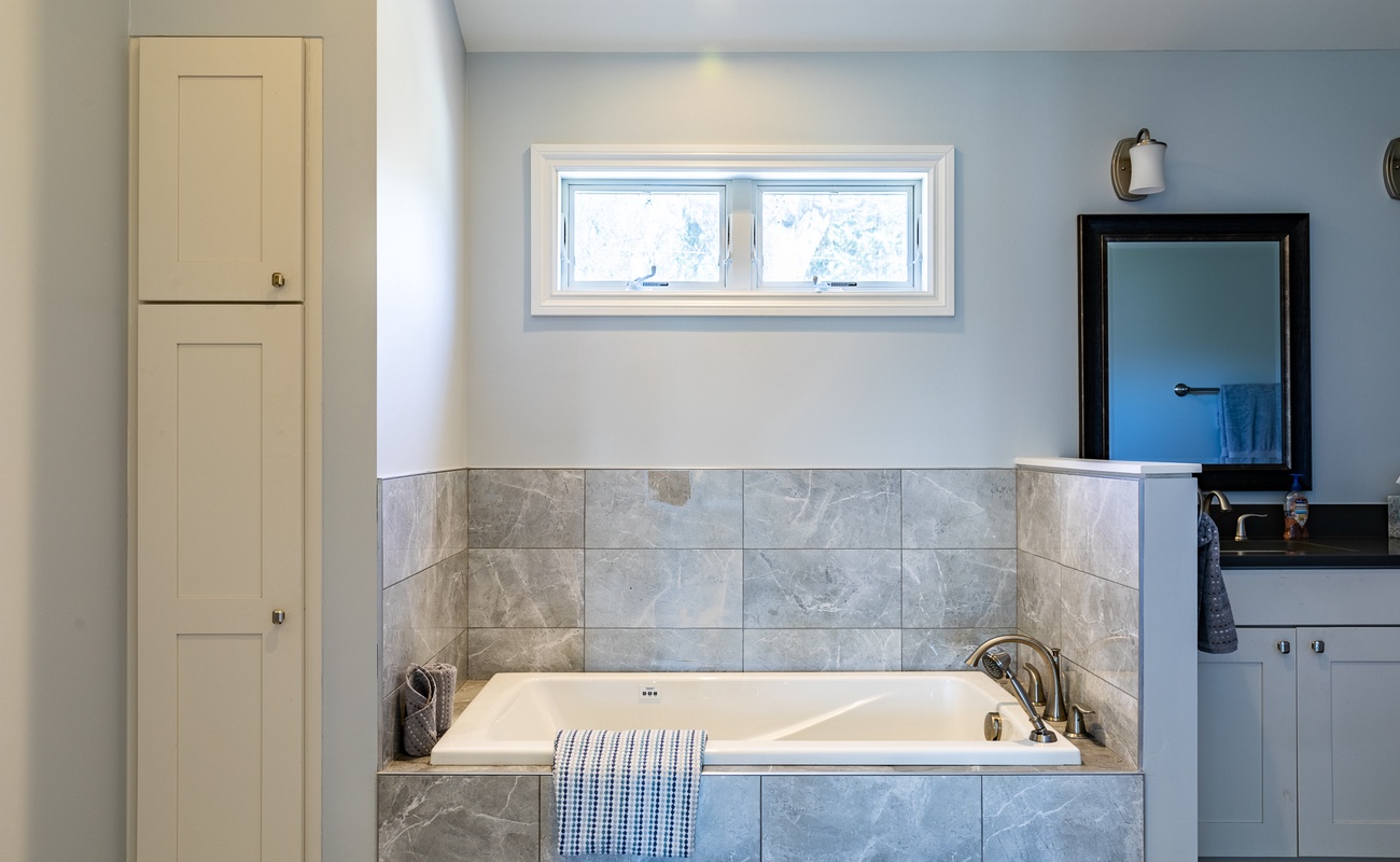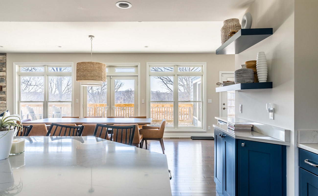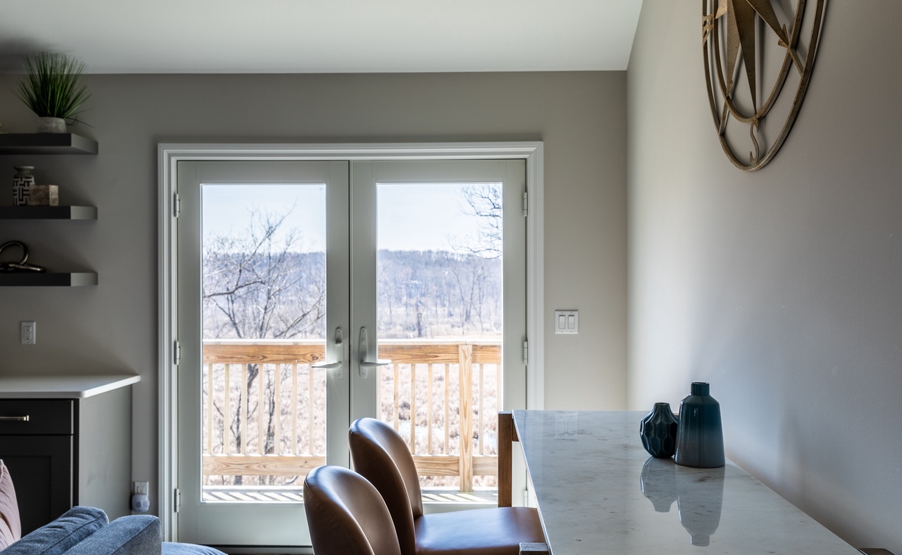 Just off the dining area you’ll find a sunroom and french doors which open onto the lower level deck. The views from the home are unlike any in the area and give the home a secluded and tranquil feel.