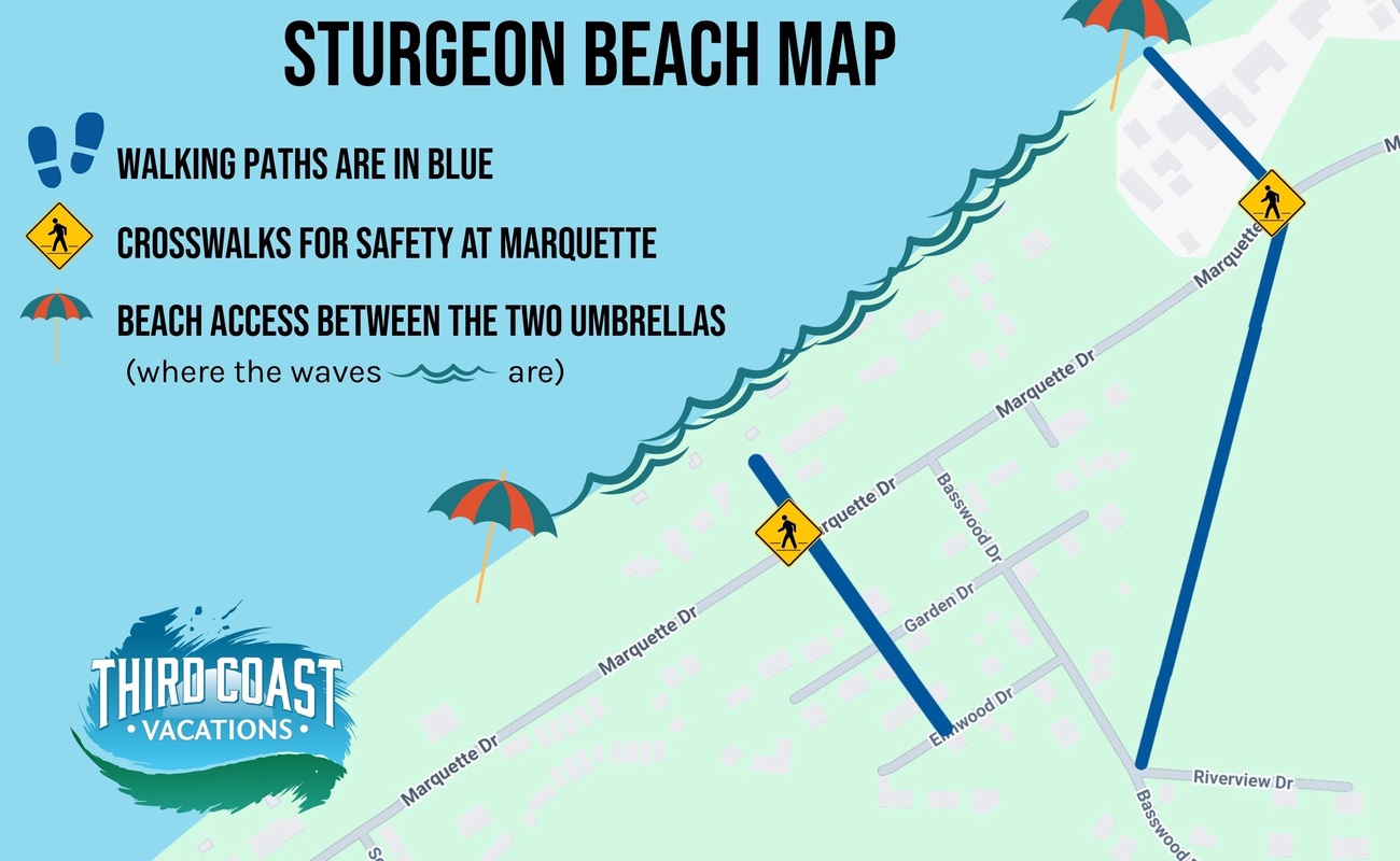 Vista Del Rio comes with access to Sturgeon Beach, which is 3/10 of a mile from the house, right near the Sturgeon Beach entry sign on Marquette Road. Please click here for an approximate map.