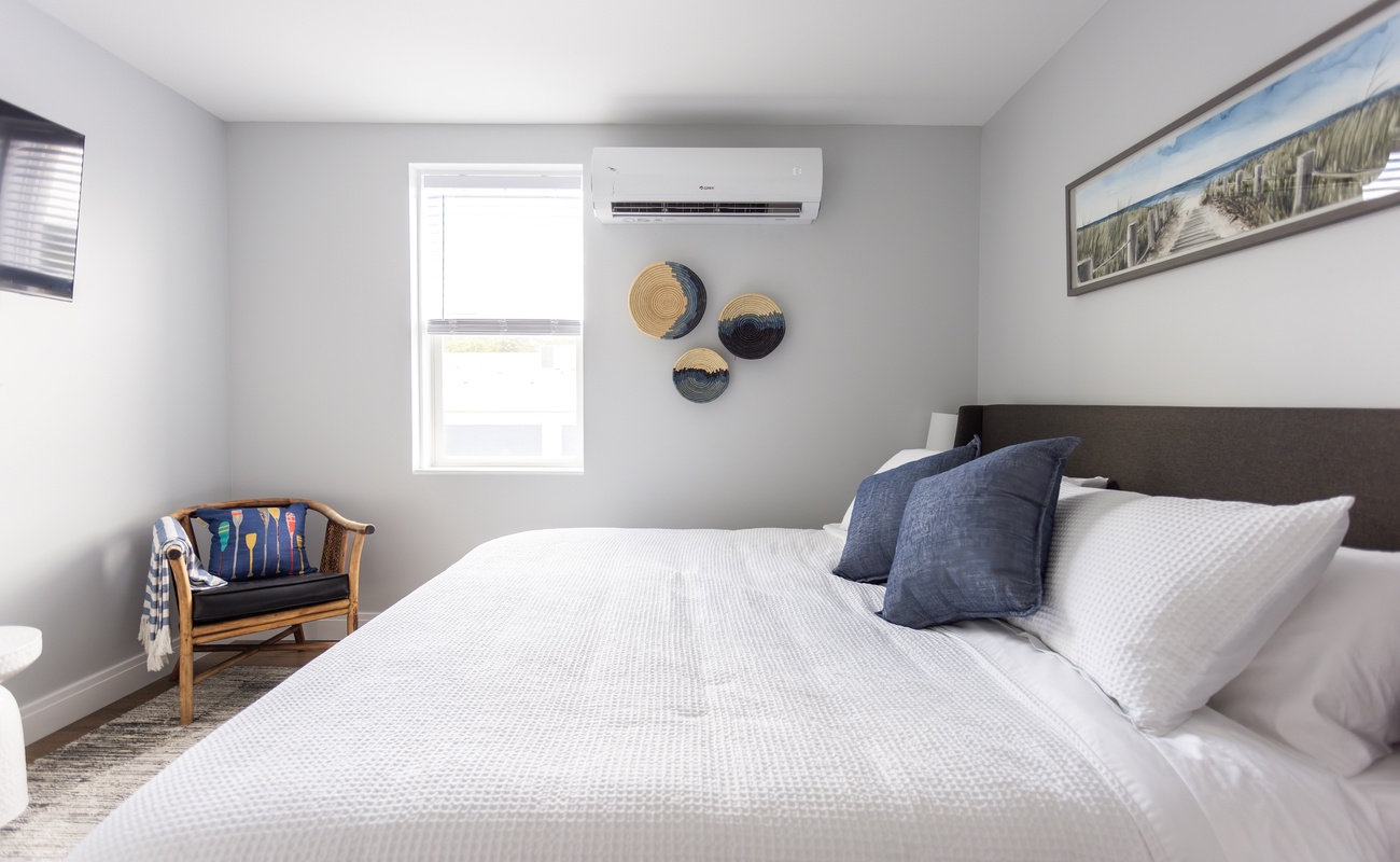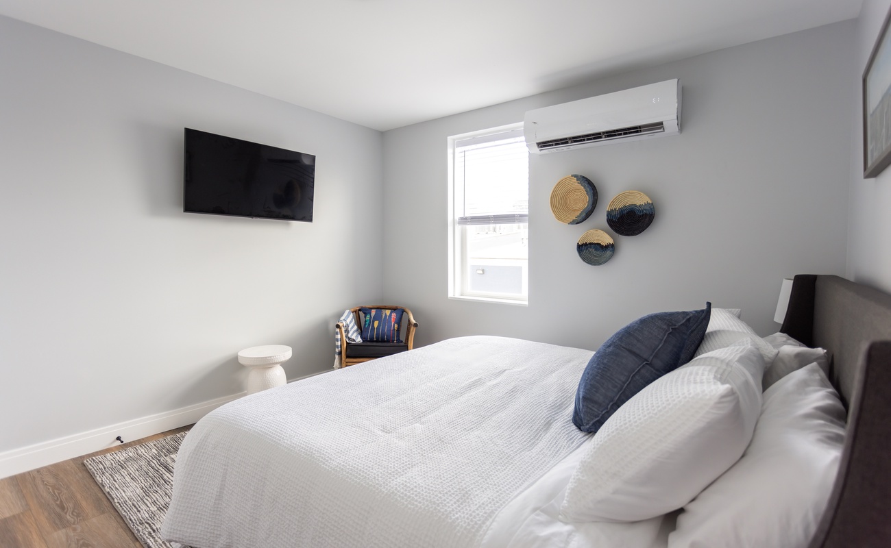 There is one 2 bedroom unit on the first floor along with a popular clothing store - Unsalted No Sharks. The unit has a separate entrance from the store and all units have their own way of coming and going. There are also two suites on the upstairs with a connecting hallway to each. All beds in the complex are king sized, full kitchens in each unit, shared laundry on the first floor for all units. Wifi, streaming TV’s are setup for your use also. The suites have been recently renovated (2024) and are in impeccable condition.