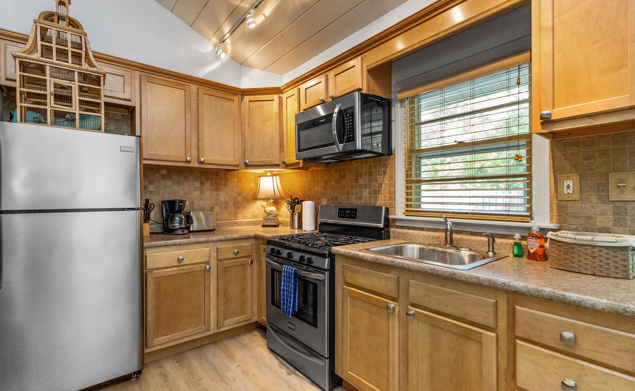 Well-Equipped Kitchen: Prepare meals with ease in the fully stocked kitchen.